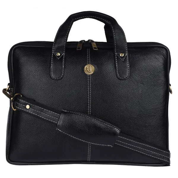 100% pure genuine leather 14.5 inch briefcase laptop messenger crossbody of..More